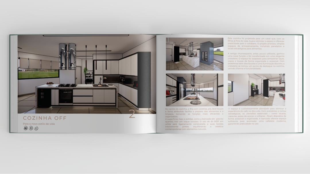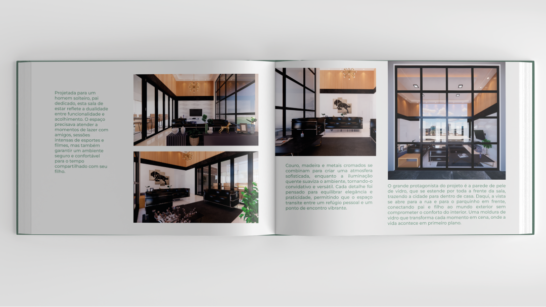Desde o primeiro momento, sabíamos que esse portfólio precisava refletir a sofisticação e funcionalidade presentes em cada projeto do Bruno. Ele já tinha um repertório incrível, com anos de experiência e um olhar detalhista para cada ambiente que cria. O nosso desafio era transformar tudo isso em um material visualmente atraente, bem organizado e fácil de navegar – tanto no digital quanto no impresso.