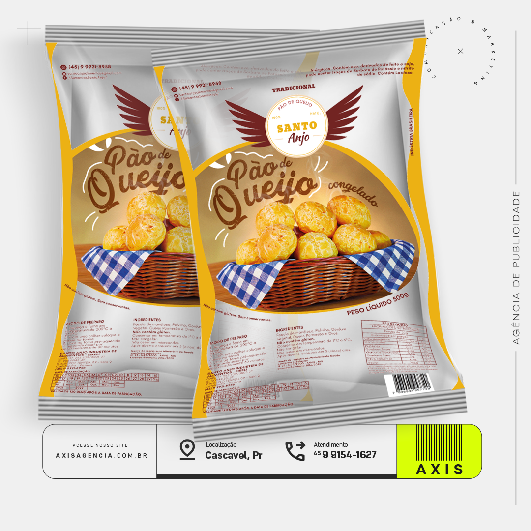 No fim, o que entregamos não foi apenas um logotipo, mas uma identidade visual que comunica e conecta. A marca do Pão de Queijo Santo Anjo agora tem uma presença forte e bem definida, transmitindo a essência do produto de forma clara e impactante. Foi um projeto que nos desafiou e nos encheu de orgulho, porque conseguimos transformar um conceito em algo tangível, pronto para conquistar seu espaço no mercado.